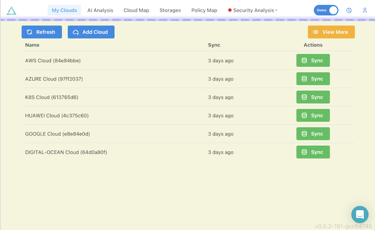Support for multiple cloud providers: AWS, Azure, Google Cloud, Huawei Cloud, DigitalOcean, Kubernetes.