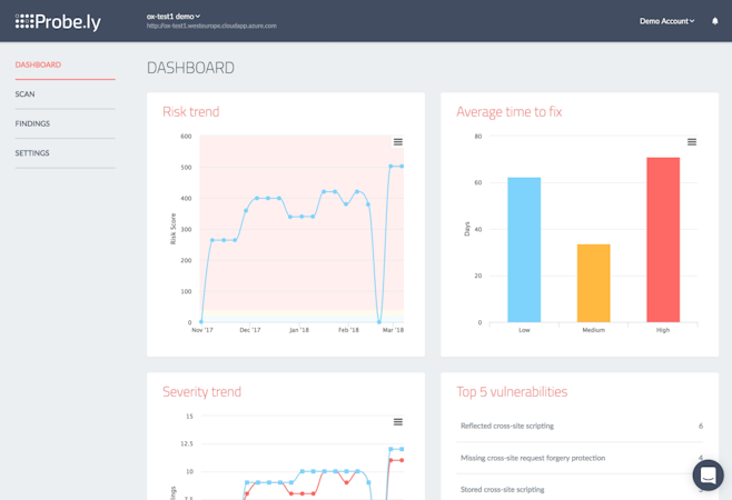 Probely is an API-first website vulnerability scanner which scans web applications to locate and identify vulnerabilities or security issues. The solution provides developers with guidance on how to solve issues, and can be integrated into continuous integration (CI) pipelines to automate security testing. Probely covers the OWASP Top 10 and many other online threats, and can be used to verify compliance with specific PCI-DSS, HIPAA, GDPR, and ISO27001 requirements.