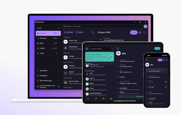 Proton Pass is an open-source password manager that employs end-to-end encryption technology to secure users' credentials and sensitive information. The platform utilizes zero-knowledge encryption protocols, ensuring that stored data remains accessible only to the authorized user. Operating under strict Swiss privacy laws, Proton Pass has undergone independent security audits by third-party experts to verify its security infrastructure. The system allows users to store unlimited passwords, notes, and important documents across unlimited devices while maintaining consistent security standards.