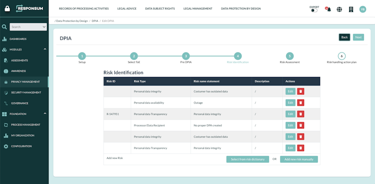 RESPONSUM is a GDPR compliance software accelerating privacy and security through process automation. The SaaS solution allows administrators to handle business processes on a drag-and-drop UI. It allows users to automatically extract records of processing activities and other information for maintaining data protection impact assessments, data subject request rights and more.