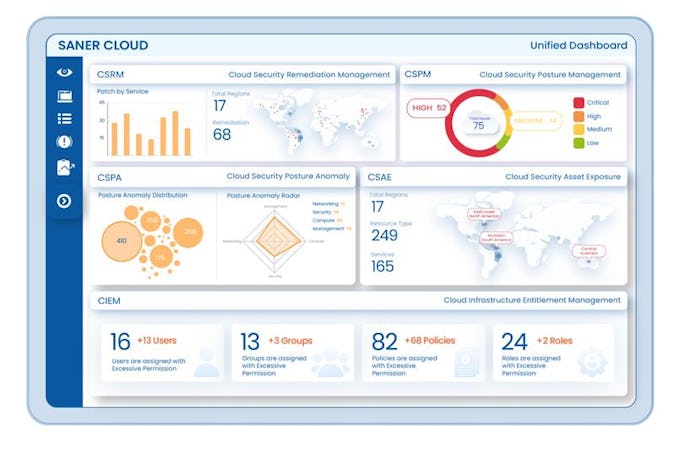 Saner Cloud is a comprehensive Cloud Native Application Protection Platform that integrates multiple security capabilities into a unified framework. The platform combines Cloud Security Remediation Management, Cloud Workload Protection, Cloud Security Posture Management, Cloud Infrastructure Entitlement Management, and other critical security functions to provide continuous protection across cloud environments. It continuously assesses security configurations, identity permissions, and workload deployments to detect misconfigurations, compliance deviations, and evolving attack vectors while enforcing policies automatically to standardize security across AWS and Azure cloud infrastructures.
