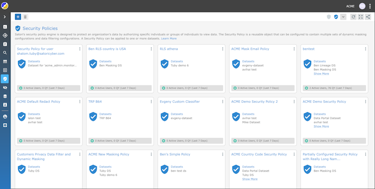 Satori is a Data Security Platform (DSP) that enables self-service data and analytics. Unlike the traditional manual data access process, with Satori, users have a personal data portal where they can see all available datasets and gain immediate access to them. Satori’s DSP dynamically applies the appropriate security and access policies, and the users get secure data access in seconds instead of weeks.