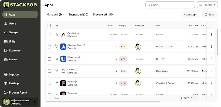 StackBob implements alongside existing identity governance and identity provider systems without requiring replacement, migration, or re architecture of current infrastructure. The platform connects multiple applications regardless of native integration capabilities with new applications. Ongoing maintenance burdens associated with connector management, custom scripting, and upgrade cycles are eliminated. StackBob sustains stringent security protocols to safeguard organizational data in alignment with industry standards. The solution automatically generates evidence for compliance frameworks such as SOC two and ISO twenty seven thousand one audits. It supports license optimization by detecting and revoking unused accounts and reduces manual provisioning overhead. Risk exposure from non integrated applications is minimized through governance coverage across the full application portfolio.