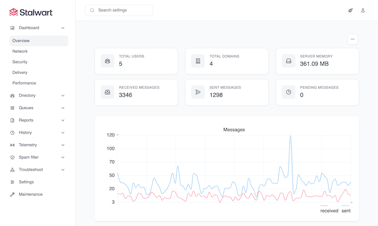 Stalwart Mail is an open-source communication platform that integrates modern email protocols with collaboration tools in a unified solution. The software provides comprehensive support for JMAP, IMAP four, POP three, SMTP and WebDAV protocols. It consolidates traditional email infrastructure components such as the mail transfer agent, message store, spam filter, calendar and contact management into a single executable with a unified configuration.