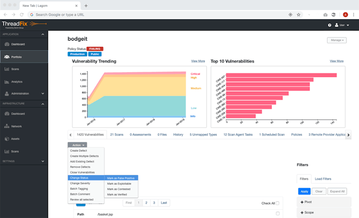ThreadFix facilitates integration with several scanning tools, such as Acunetix, Atlassian Jira, Barracuda Vulnerability Manager, Bugzilla, Checkmarx, DenyAll, and more. The dashboard enables teams to get an overview of the organization’s portfolio and display trending vulnerabilities from recently uploaded scan results. ThreadFix allows managers to view vulnerability comment threads and generate comparison reports to test the effectiveness of various testing technologies.