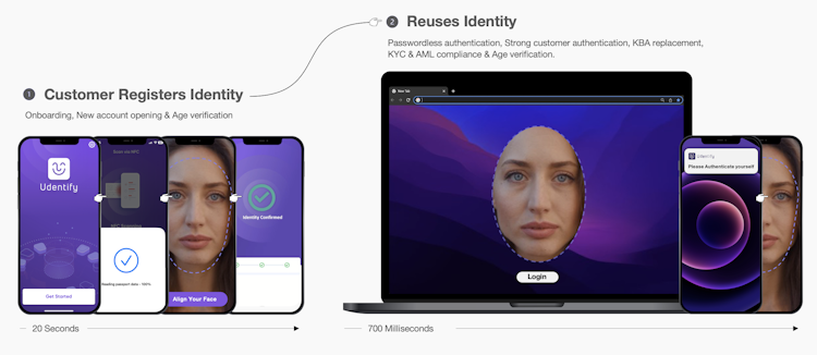 Know the real identity of your customer, user, or employee with the Udentify Identity Verification and Biometric Authentication solution.