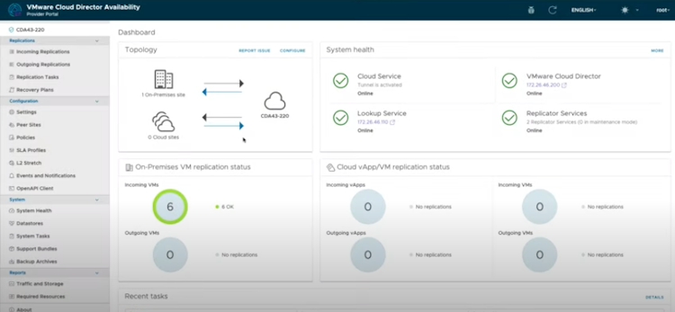 VMware Cloud Director Availability’s user interface