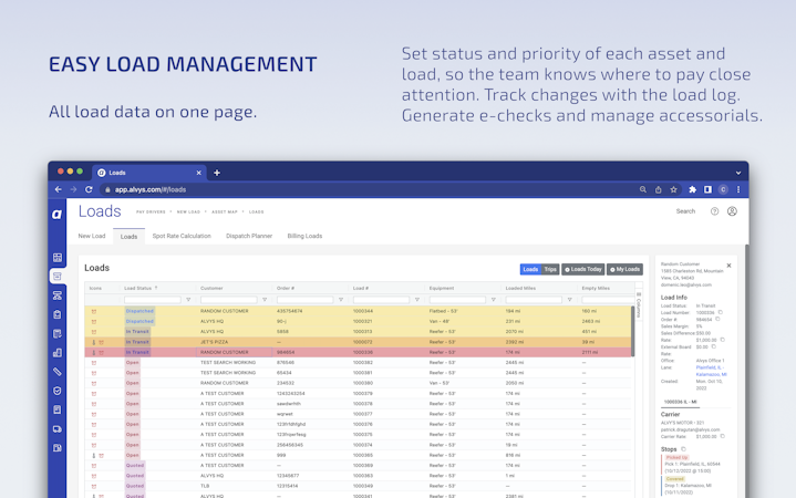 Alvys is proven to save carriers and brokers time by eliminating friction in each workflow. The software features powerful integrations, so you don't need multiple tabs open at once. You can organize your operation in one digital space with one login. Here are a few of the popular features: