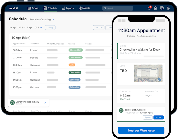 “Our customer uses Uber Freight to schedule inbounds and outbounds. That information is translated over to Conduit for a user friendly experience.”