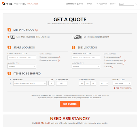 FreightCenter is an online shipping solution which allows users to obtain shipping rates and schedule pickups with qualified, well-known freight and shipping companies using an online quoting engine and booking API web services. Users can also track their shipments by simply entering their shipment ID or PRO number.