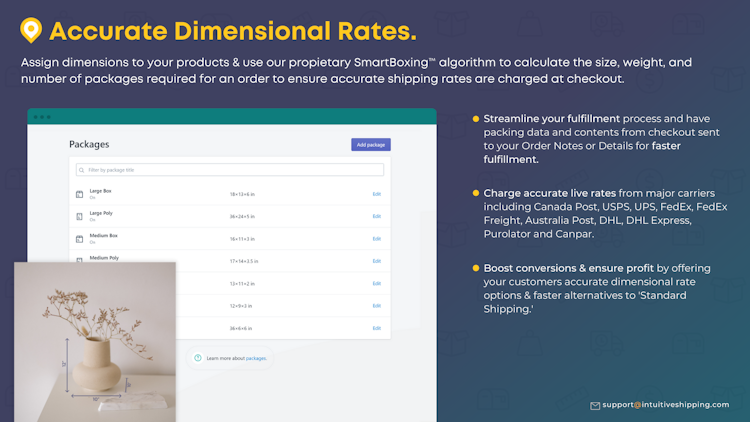 Intuitive Shipping expands on the built-in shipping options offered in eCommerce platforms, giving online stores a full suite of tools to control shipping costs and delivery options at checkout.