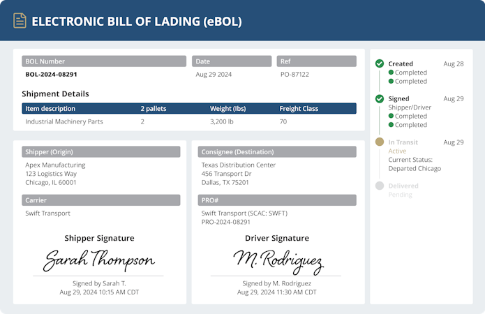 The system provides automated driver check-in functionality through self-service kiosks and mobile device access that does not require download of dedicated applications or account creation. The platform orchestrates the workflow from gate entry to exit and incorporates real-time dock assignment capabilities that guide drivers to appropriate loading or unloading locations. Integrated electronic bill of lading functionality enables paperless documentation processes and allows drivers to apply digital signatures for multiple bills of lading in a single transaction. The platform tracks dwell times and monitors truck movements throughout the yard to optimize turn times and reduce detention fees.