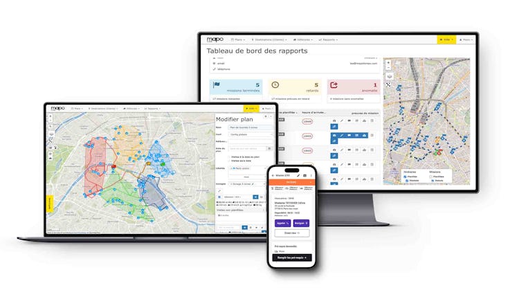Our solution combines two powerful tools : Mapo Planner for route planning and optimisation, and Mapo Driver, a mobile application for real-time field tracking.