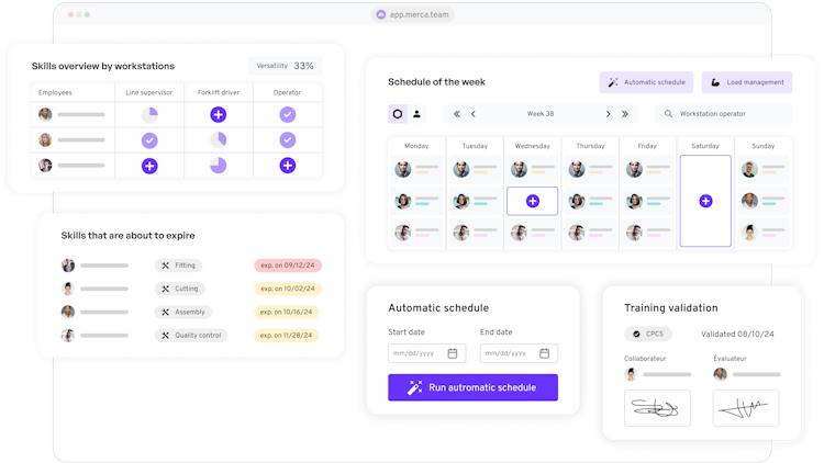 Mercateam is a SaaS platform designed for industrial companies aiming to digitize skills management, authorizations, training paths, and workforce scheduling.
