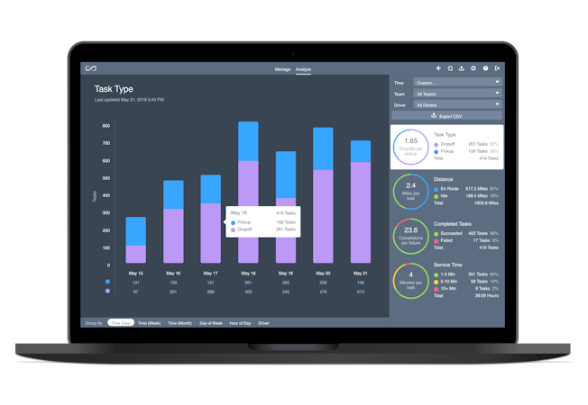 Onfleet is a last-mile delivery management platform suitable for large enterprise businesses as well as small and medium businesses (SMBs). The software includes intuitive driver apps for iOS and Android devices, robust proof-of-delivery features (photo, signature, and barcode capture), powerful route optimization and auto-dispatching, real-time driver tracking, automated customer notifications and powerful analytics.