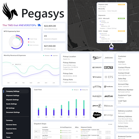 Pegasys is designed for small to mid-sized trucking companies that prefer a true web-based TMS that is very affordable and ever-growing.