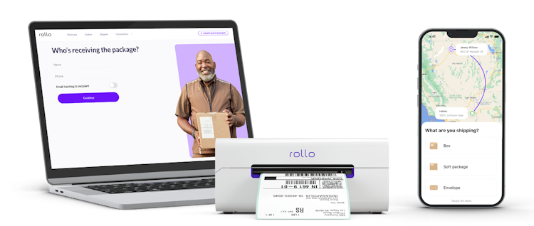 Rollo is a shipping platform available via an iOS or Android app, desktop, or tablet. Users can print official United States Postal Service, UPS, and Fedex shipping labels.