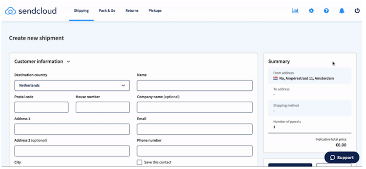 Sendcloud’s user interface