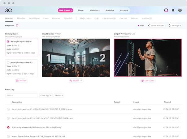 With our user-friendly and easy-to-use interface, you can start streaming in no time. We support redundant delivery of your signals with all common hardware or software encoders.