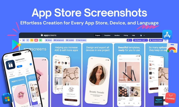 AppScreens enables businesses generate app store images. With multi-store support covering Apple App Store, Google Play, Microsoft Store, Huawei AppGallery, Amazon AppStore, and more, it automates every step from AI-driven captions and restyling to bulk importing device-specific screenshots and auto-localizing in various languages.