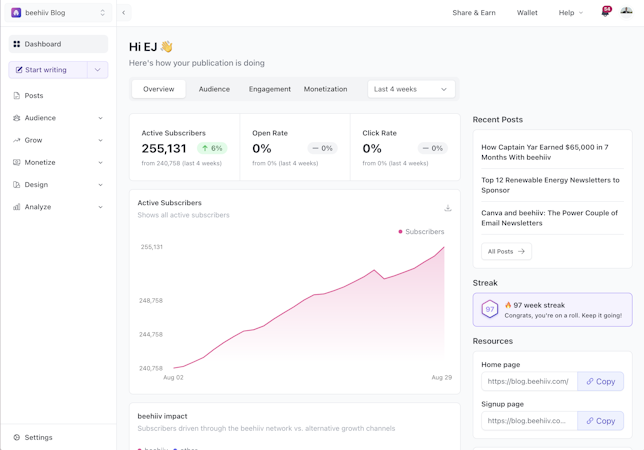 beehiiv’s user interface