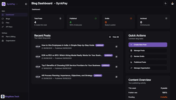 BlogNow.Tech is an AI-enabled, headless CMS purpose-built for modern frameworks like Next.js, enabling teams to integrate professional blogs in minutes without the bloat of WordPress. Unlike legacy CMSes, BlogNow.Tech delivers lightning-fast publishing and instant scalability, all on a secure, cloud-based architecture—no open-source maintenance required.