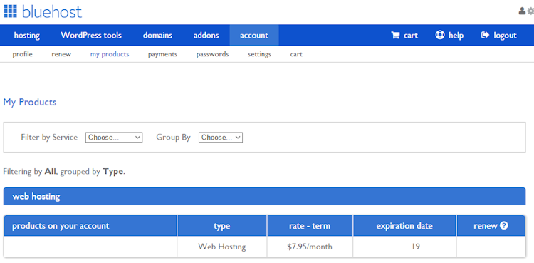 Bluehost’s user interface