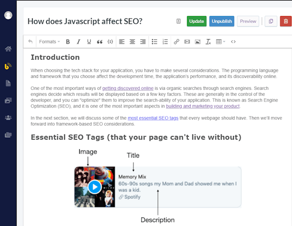 Butter CMS is a cloud-based headless content management system designed to help businesses create, deploy, and manage marketing websites, blogs, and web pages for SaaS products, marketplaces, eCommerce, and more. The platform includes white-labeling capabilities, which enable organizations to design personalized blogs with custom themes, logos, content, font, and colors and embed them into existing websites.