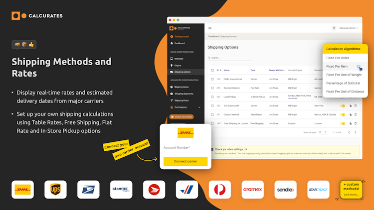 Advanced Shipping Features: DIM Weight Shipping, Smart Packaging, Shipping Zones, Delivery Dates, Multi-origin Shipping, Table Rates, Shipping on Product Pages, and more.