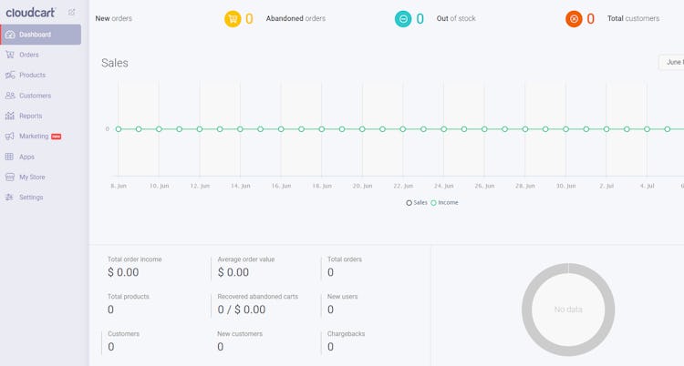CloudCart’s user interface