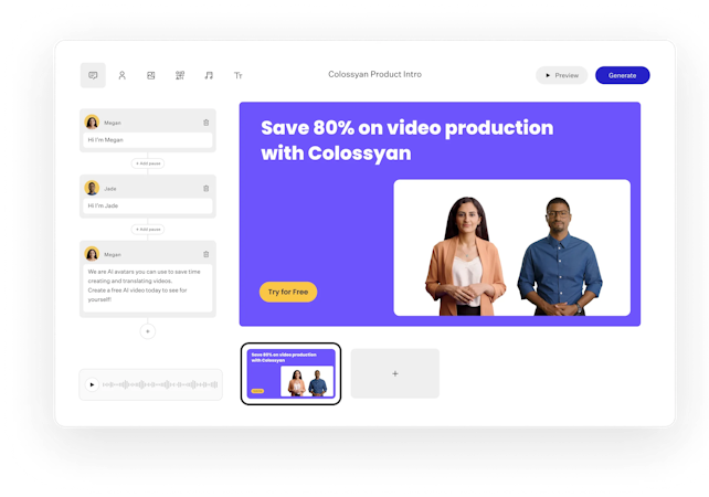 Colossyan Creator is a powerful AI video generation platform designed to streamline the video creation process for businesses and organizations. With its robust set of features, Colossyan Creator empowers users to produce high-quality, engaging videos.