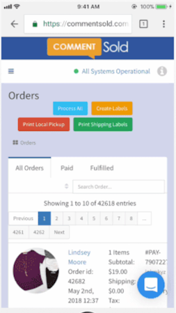 The online application allows customers to identify purchasable items in a post, video or live stream and purchase through comments. An invoice is sent through messenger or email and customers can click a link to access their cart and check out. With the gamification feature, users can send timed pending cart reminders to customers and configure cart expiration duration. The shipping functionality enables staff to generate packing lists and labels, combine and ship orders and manage multiple orders at once.