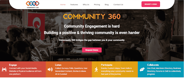 Community360 is an all-in-one community engagement platform that simplifies the management of data, communities, and the creation of a positive, thriving, and profitable ecosystem. The platform provides a fully white-label, B2B, and government-ready system that is secure, single-tenancy, and ready for customization.