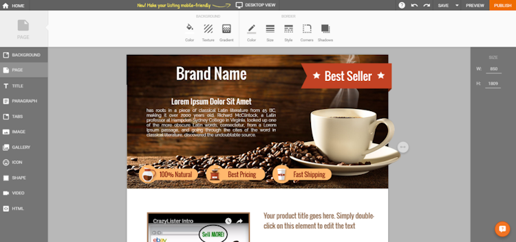 CrazyLister also supports a mobile listings editor and mobile responsive templates, to ensure that listings look great on any device, from desktop to mobile.
