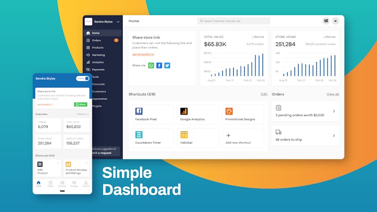 Create your online store in less than 30 seconds.