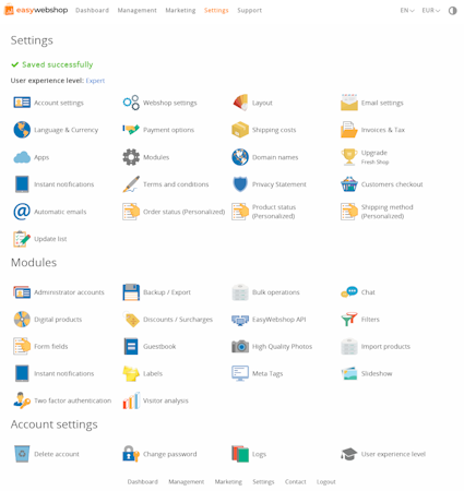 Shipping options: EasyWebshop provides tools for managing shipping options, including real-time shipping rates, tracking and integration with major shipping companies. This feature helps streamline the fulfillment process and increases customer satisfaction.