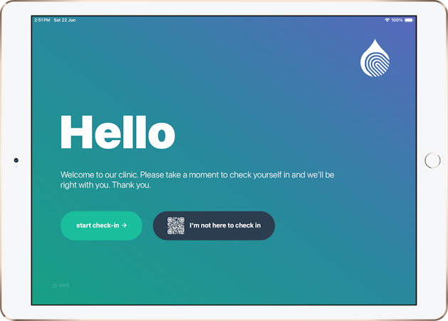 Patient check-in kiosk and intake forms for Cliniko clinics.