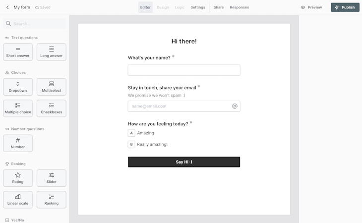 Fomr is a form builder that enables businesses, organizations, and individuals to create professional-looking forms without any coding experience. It enables users to build surveys, contact forms, sign-up pages, or any other type of data collection tool.