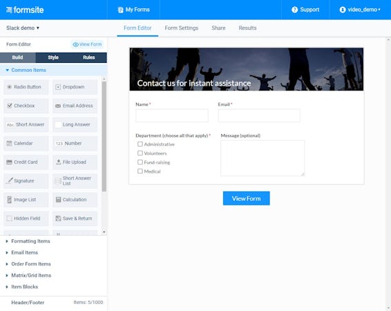 Formsite's key features