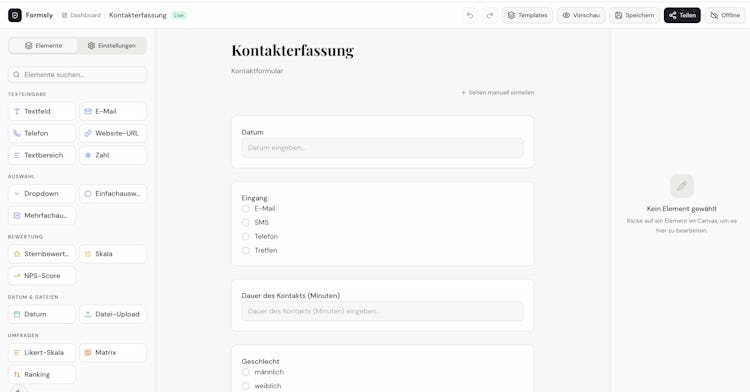 The platform provides a comprehensive drag and drop form builder that enables creation of professional forms with live preview functionality and no development requirements. It supports multi page forms with step by step structures to improve completion rates and reduce abandonment. Conditional logic can show or hide fields and pages based on earlier responses. Secure file transfer handles encrypted uploads and downloads of up to two gigabytes using Advanced Encryption Standard with Galois Counter Mode or password based end to end encryption and automatic deletion after configurable retention intervals. The survey element library includes net promoter score questions along with star ratings, rating scales, single and multiple choice fields and open text responses. Digital signature functionality permits handwritten signing via mouse or touch input. Custom branding features allow logo uploads and visual customization to match corporate design guidelines. The system supports form creation in several languages including German, English, French and Italian. Response analytics present metrics such as median completion times and abandonment funnels per field with distribution visualizations and export capabilities for spreadsheet formats. Automatic email notifications alert stakeholders to new submissions. Forms can be embedded directly into websites or internal portals and shared via quick response codes. Pre built templates are available for common scenarios such as patient agreements, medical anamnesis, psychological intake, contact inquiries, job applications and research surveys.