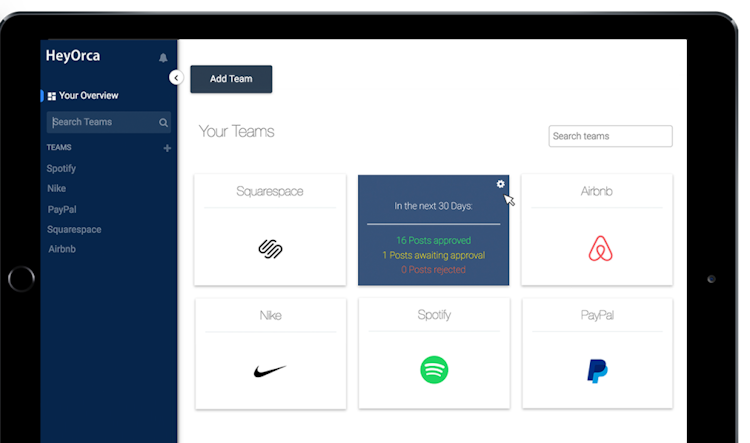 The HeyOrca platform comes with a centralized dashboard, which helps administrators manage client calendars, content ideas, digital assets, publishing timeline, and more, providing users with visibility into marketing activity. It lets teams comment on specific posts, share renderings with clients, group content into multiple campaigns, and schedule posts by setting time, date, and repetition parameters. Plus, team members can use tags to organize, search, and manage content in the calendar or library.