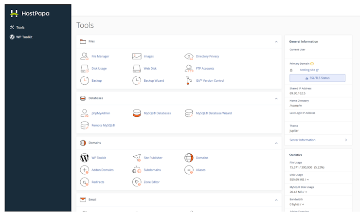 HostPapa’s user interface