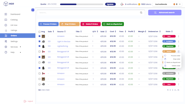 With integrated suppliers, Hustle Got Real gives you instant access to a wide range of products that you can choose from to sell in your own online store. Once you select products from the catalog, you can list them for sale on your own website. The platform also provides incredibly useful functionality like price and stock monitoring, automatically updating product listings when supplier data changes to ensure your store remains competitive.