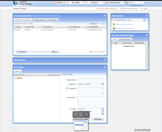 iAPPS Content Manager’s user interface