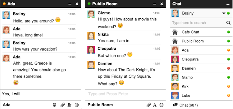 Primary features of iFlyChat include pop-up chats, theme customisation, tab synchronisation, SSL security, translation, file attachment and chat logs. It provides a chat moderator/admin module for administrators to delete selected messages or complete the chat history of one or more conversations. Plus, it enables users to control swearing and any URLs spamming private as well as public chat rooms.