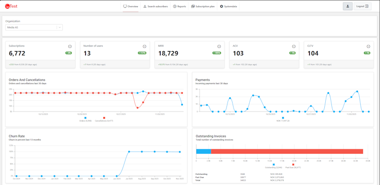 With INFO-Subscription, companies can automate recurring billing and payment collection using cards, invoices, EHF, Vipps, eFaktura, Autogiro, AvtaleGiro, and more. It allows customers to manage their own subscriptions through a self-service portal and access real-time insights on revenue, churn, and subscriber trends to make decisions It is ideal for SaaS companies, media and publishing, membership & rental services and more.