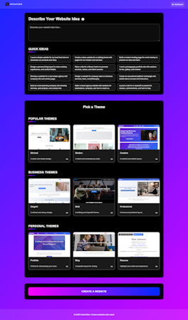 The platform features a comprehensive suite of tools that facilitate rapid website development through a structured six-step process. Users begin by describing their website concept, after which they select from multiple customizable themes, including nine premium options currently available to all users as part of a promotional launch. Instantsite's AI engine then generates relevant content based on the user's description, providing a foundation that can be further customized. The software includes comprehensive customization capabilities allowing users to edit text, upload images, add logos, and implement favicons. Advanced features vary by subscription tier, with the Premium plan offering website analytics, color customization tools, and image search functionality. The platform also incorporates SEO optimization tools, secure hosting services, and mobile-responsive design to ensure websites perform well across all devices and search engines.
