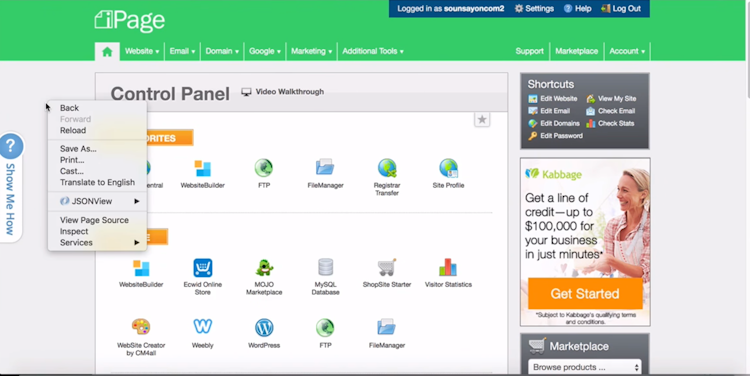 iPage’s user interface