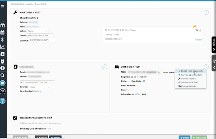Identifix Shop Manager is a cloud-based auto repair software that helps businesses in the automotive industry access original equipment manufacturer (OEM) services and repair information. The built-in estimating tools allow users to check equipment availability and price, create multiple jobs, build recurring task templates, and send estimates to customers via email.