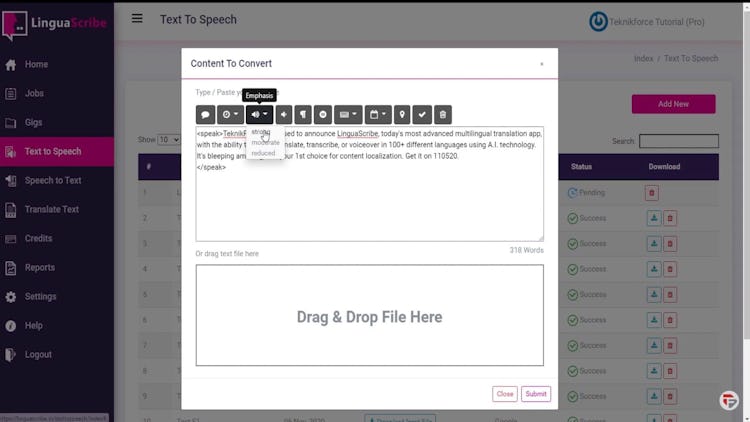 LinguaScribe is a language processing app for text and audio with support for the biggest range of lifelike voices and translation engines.